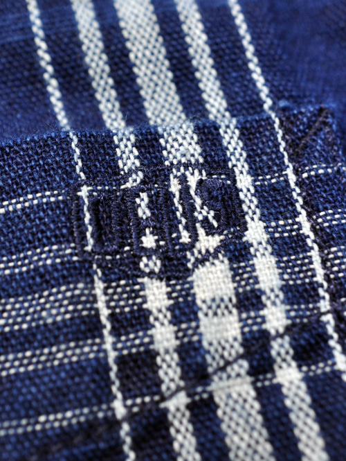 濃淡の有るインディゴ染めされた糸を使って
