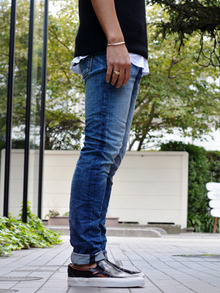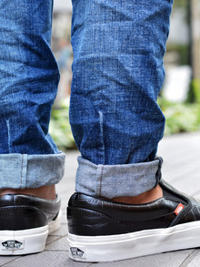 すそはより絞り込まれているので、綺麗なシルエットで穿けます。
