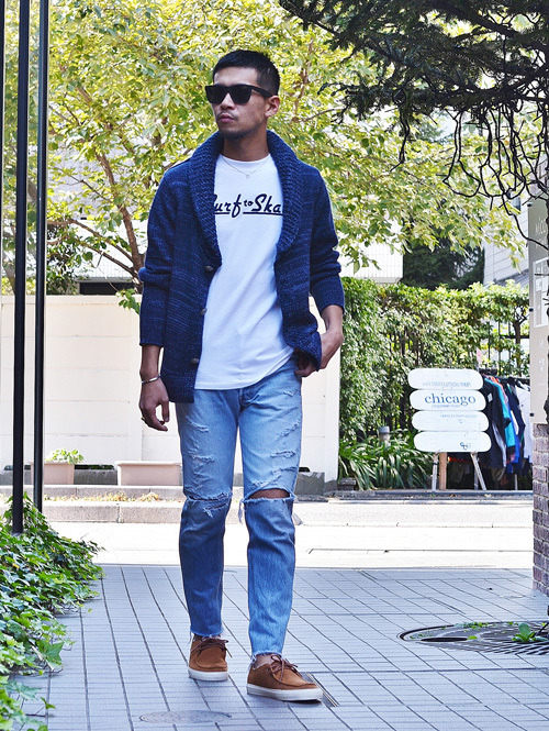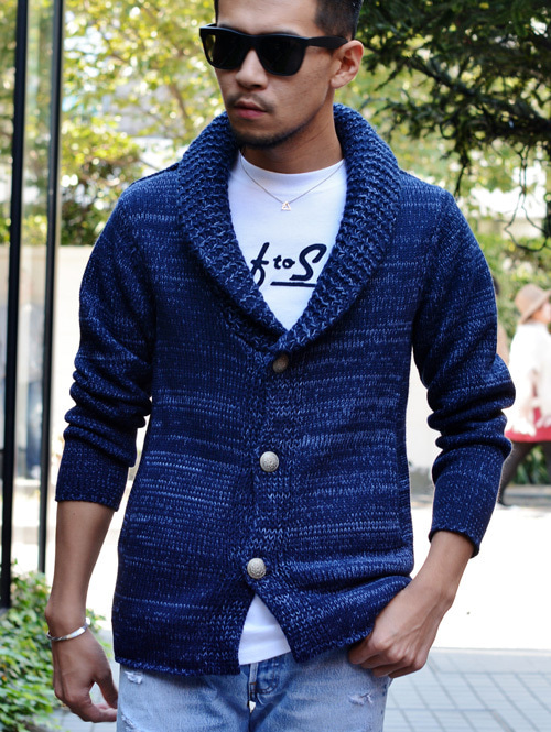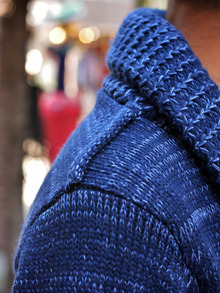 インディゴカラーのショールカーディガンが入荷して来ました。