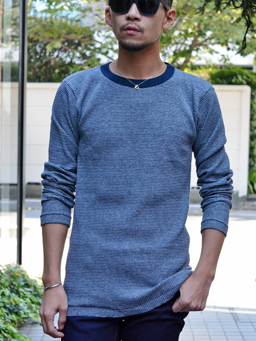 ネイビーの糸とホワイトの糸をミックスさせたカラーリング