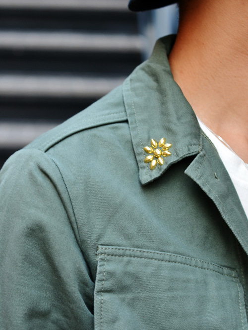 襟にはシンプルなフラワー