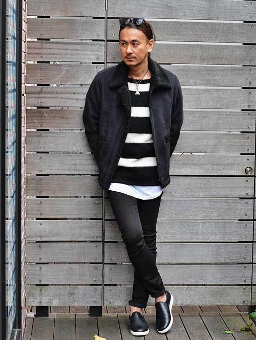 ブラックのムートンならではのスタイリングかと思います。