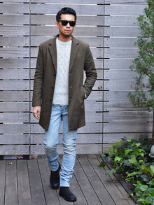 あえてオリーブグリーンではなく、カーキのシックなチェスターです。