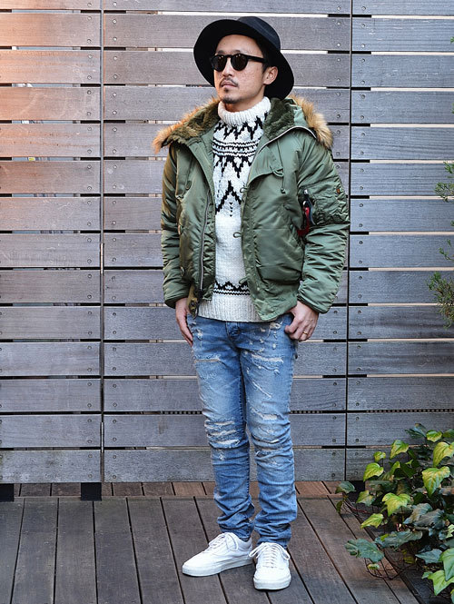 世界的にMA-1やN-2B等の定番のミリタリーアイテムを使ったスタイリングが人気ですが
