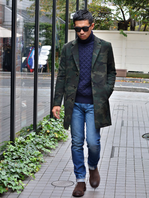ありそうで余り見かけないカモフラージュのピーコート