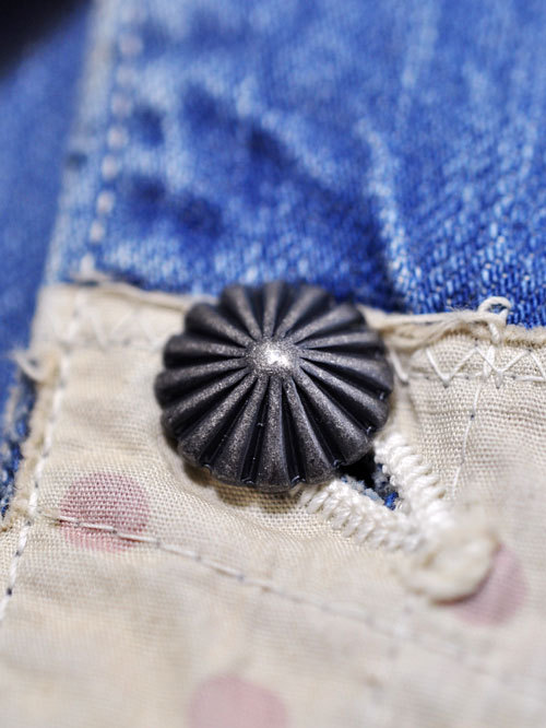 このコンチョボタンが簡単に外せ、自分のお気に入りのコンチョに替えられる
