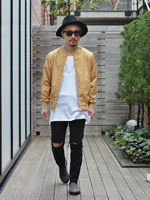 MA-1などとは少し違ったスタイリングが楽しめます。