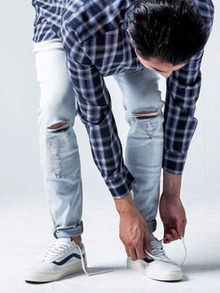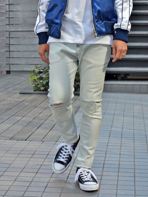 今回はLOW BLOW PANTのアイスブルーのダメージ加工が入荷