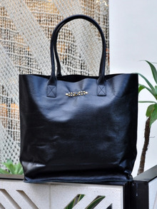 別注でまたレザーのトートにスタッズを打ってもらいました。