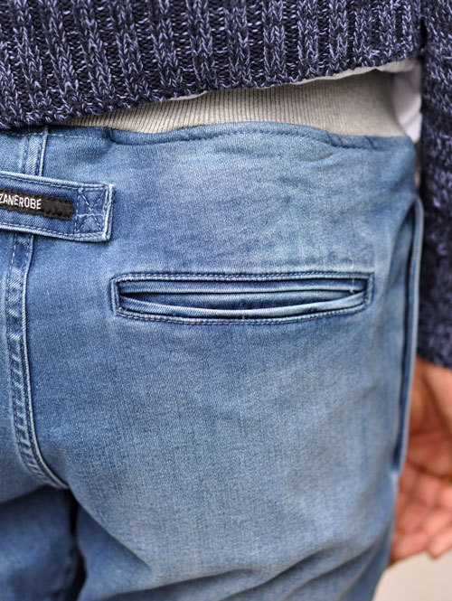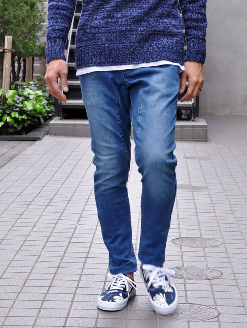 新作のSALERNO RIB PANTはスエットとデニムパンツを合わせた