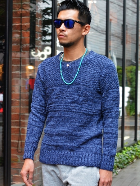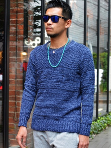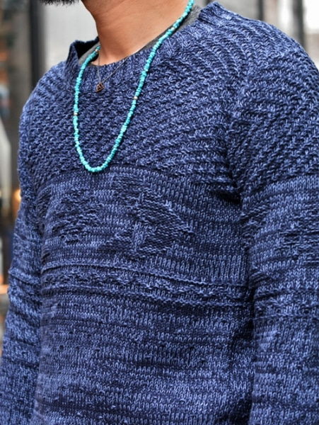 丁度胸の辺りにインディアンラグ柄が編みこまれています。