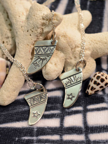 今回はサーフボードのフィンの形をしたネックレスで