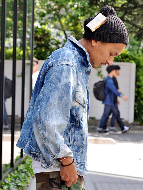 今回はUSA LEVISの大き目のデニムジャケットを使って