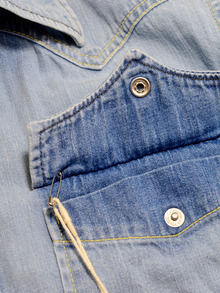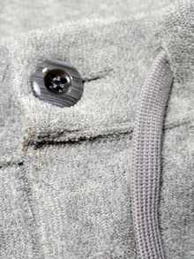なのでフラップの下や袖の裏、そして裾などは少し色が濃い