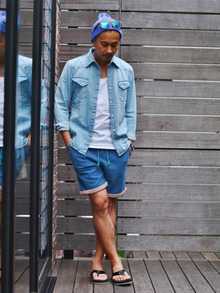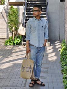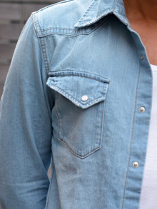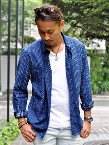 インディゴ染の麻混の生地を使ったサマーシャツで
