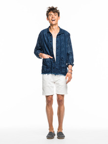 もっとリゾート感のあるインディゴ染の麻混のシャツも入荷しました。
