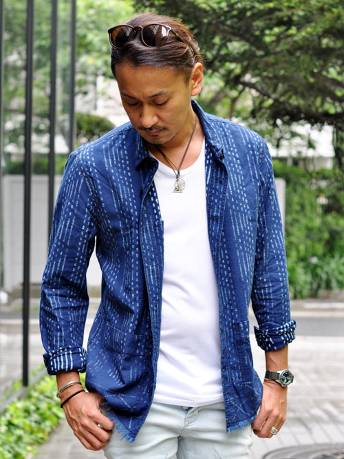 もっとリゾート感のあるインディゴ染の麻混のシャツも入荷しました。