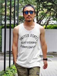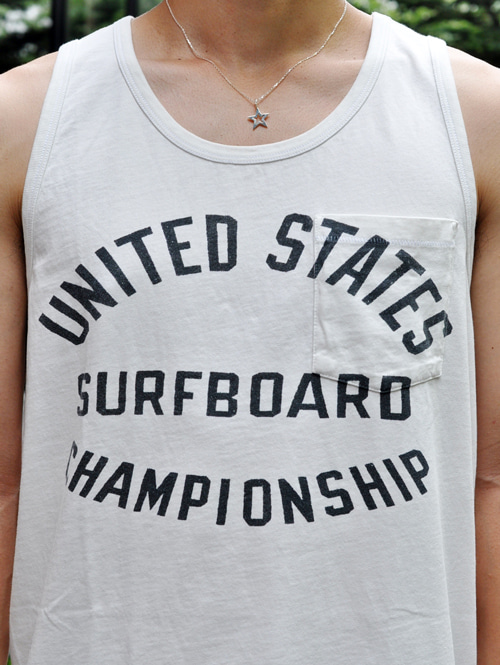 1960年代にハンティントンビーチで行われた全米サーフィン大会のTシャツからグラフィックデザインを取ったデザイン