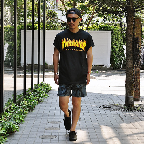 THRASHER FIRE PATTERN LOGO TEE