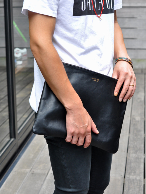 ブラックとの相性もいいボックスロゴは、スタイリングを選ばず使える