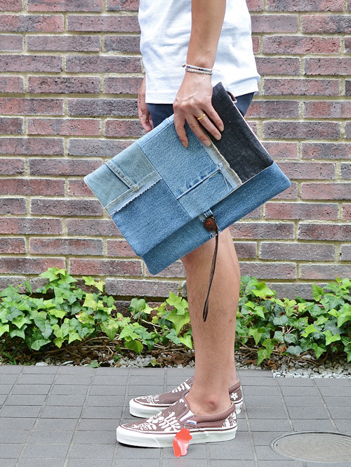 MONT LIVEREのデニムのパッチワークトートバッグ