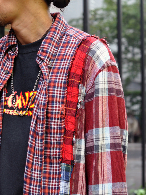 何枚もチェックシャツを解体して、そのパーツを合わせて作られたオンリーワン一枚
