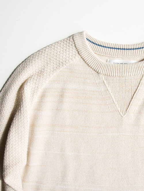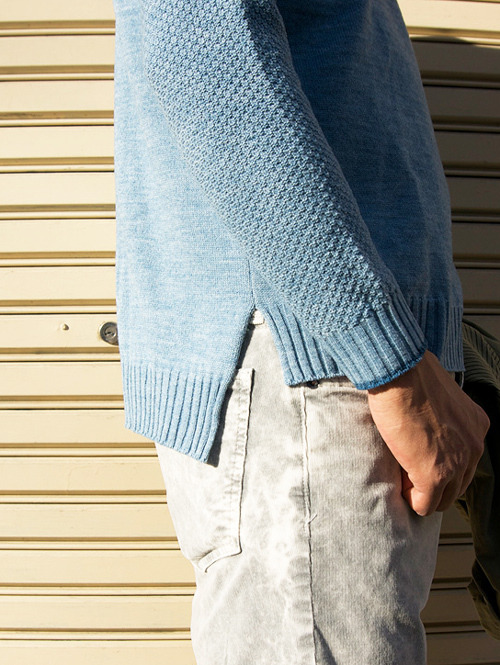 ラグラン袖のデザインで、袖とボディーの編み方を変えて作っており