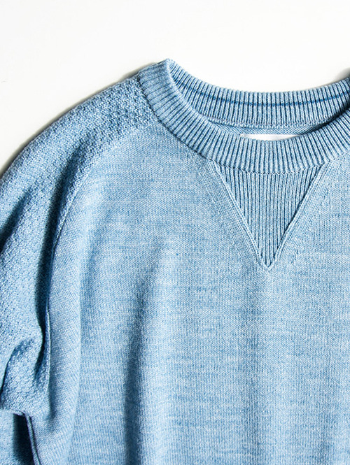 袖口とネックの内側のカラーをブルーにしています。