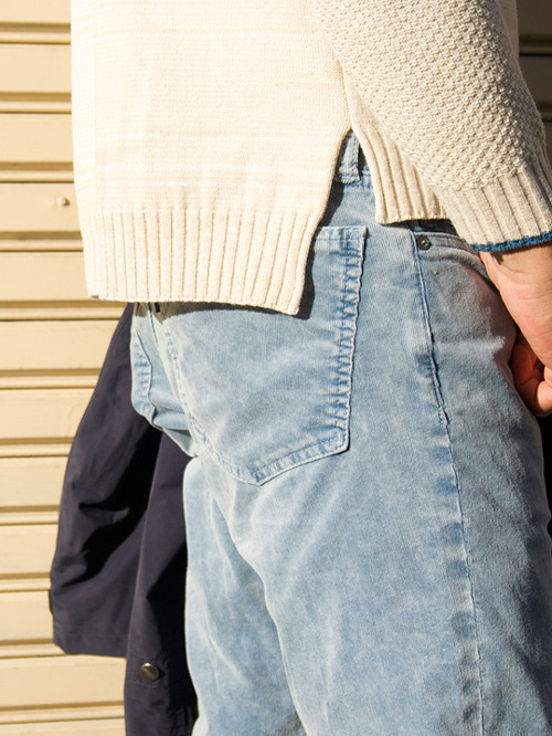 袖口のブルーがポイントになったり、お洒落に着こなせます。