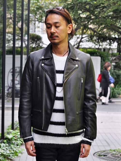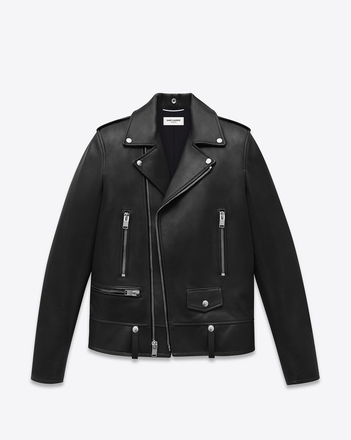 このサンローランのライダースも子羊のレザーを使って作られています。