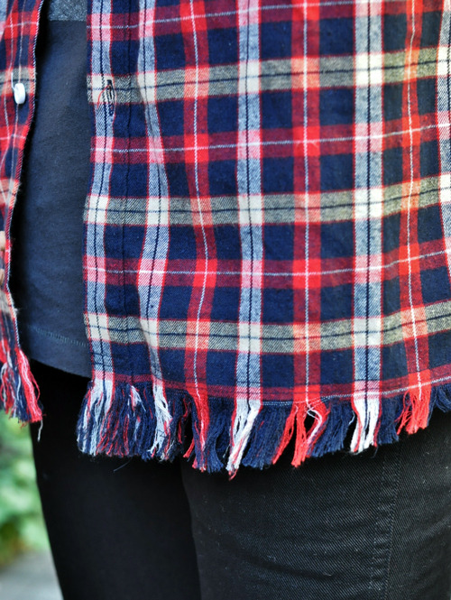 やや長めのシルエットで裾がフリンジになったネルチェックシャツが入荷