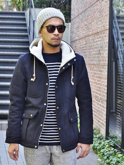 メルトン素材で裏ボアのマウンテンジャケット