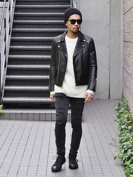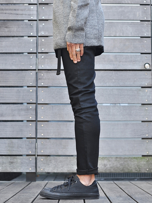 タイトなブラックパンツは必須アイテム![]()