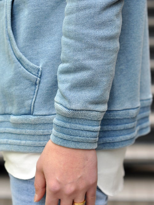 当たりや色落ちにもこだわって作られたパーカーで