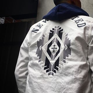 バックに刺繍でオルテガ柄が大きく入っています。