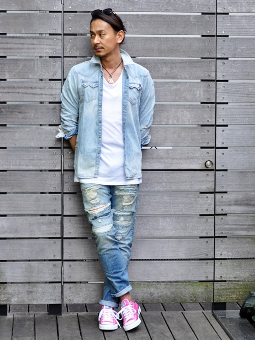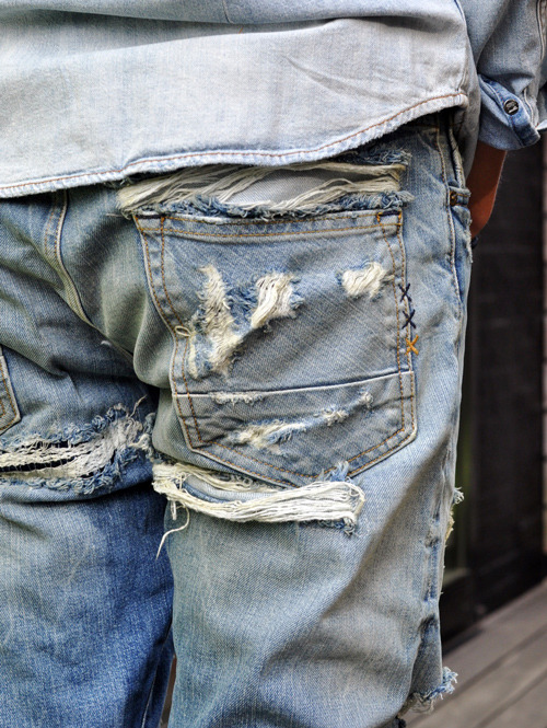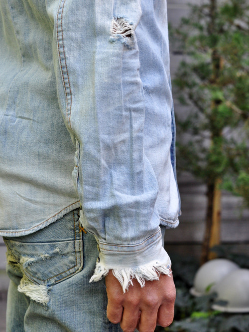 デニムシャツもダメージ