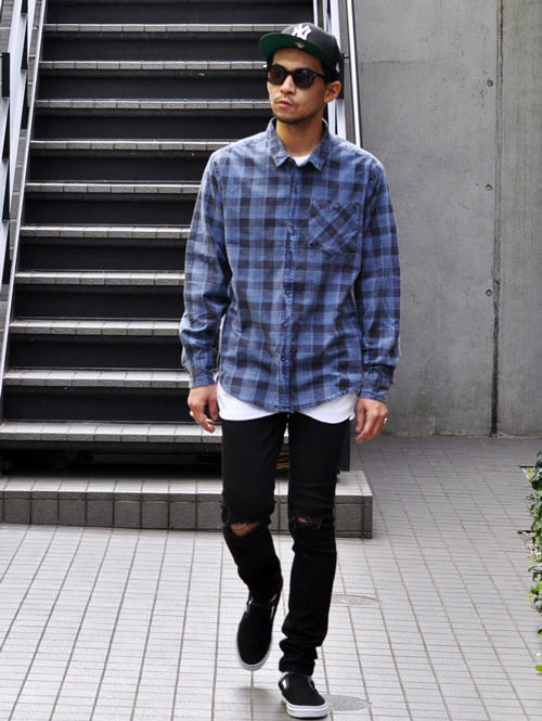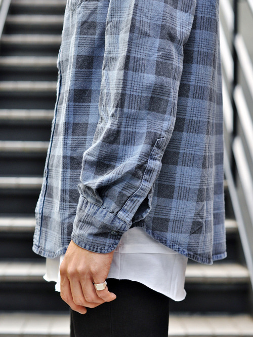 大きいサイジングのチェックシャツ