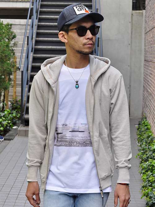 オリジナルのジップアップパーカーで