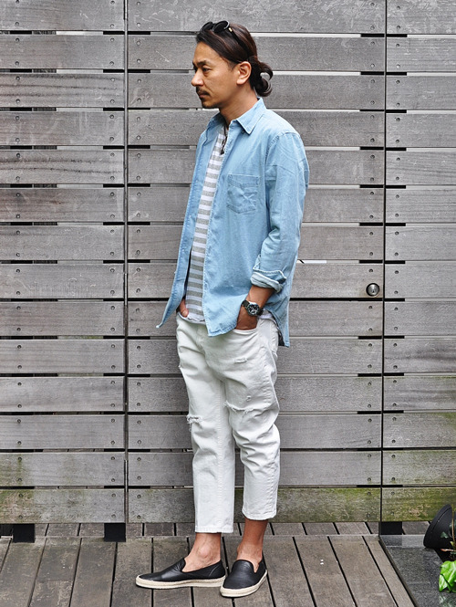 今シーズンらしい淡いブルーデニム