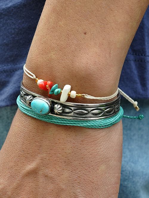 夏らしく何本かブレスレットを付けるのにちょうどいい感じです。