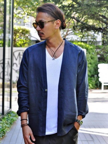 リネンの布帛のカーディガンが入荷