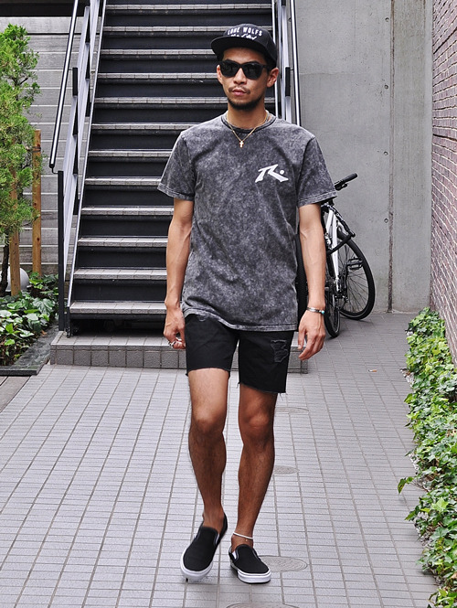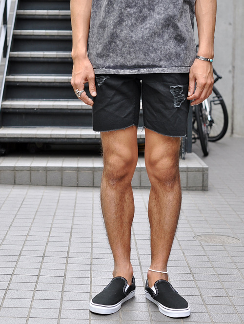 B.Cools ダメージデニムショーツ ブラック