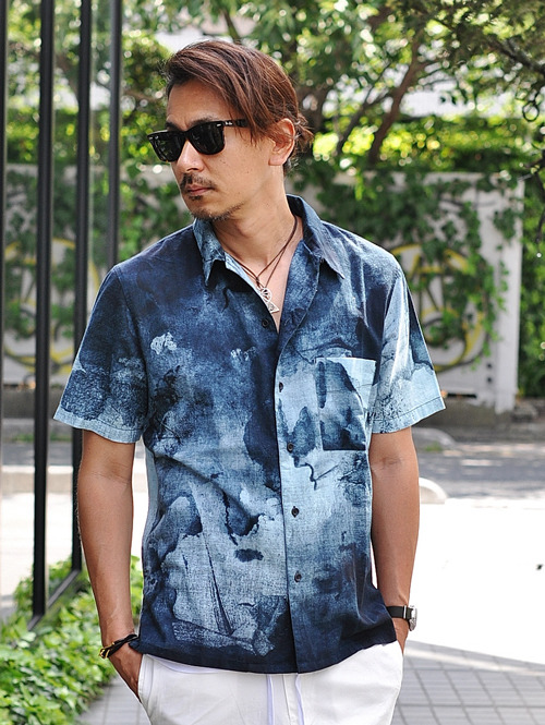 夏らしいインド綿を使ったオープンカラーのシャツで