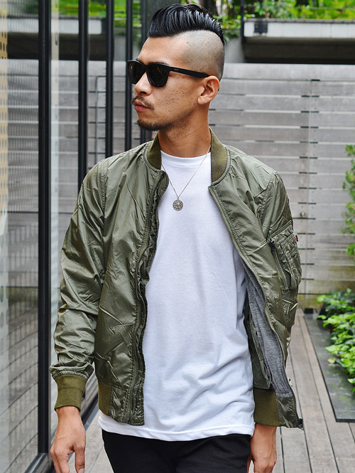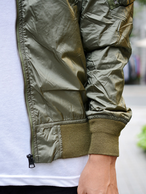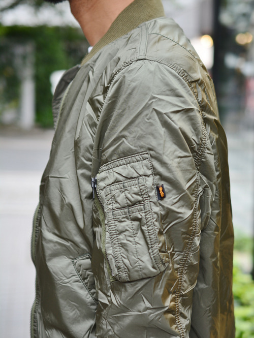 表地も一般的なMA-1では使われない細番手のナイロン地を使っており