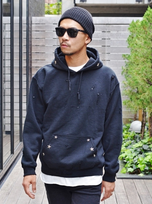 ETOFFEORIGINAL ダメージスターパーカー BLACK