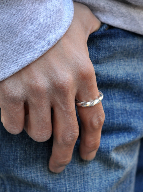 スクエアのシルバーを手でツイストして程よいツイスト感を出しています。