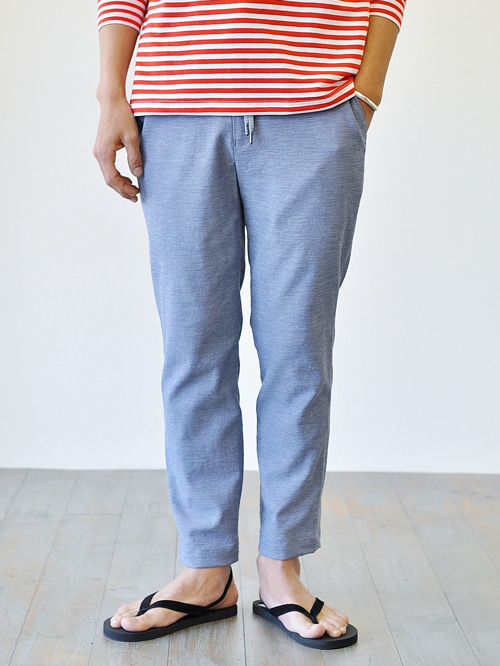 ベタつかずドライな肌触りが特徴でストレッチも効いた綿麻オックスのパンツが入荷