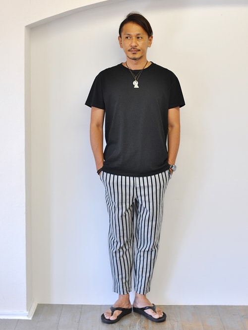 SAFARI掲載 BACK HEAD ストライプ スエットクロップパンツ BLACK