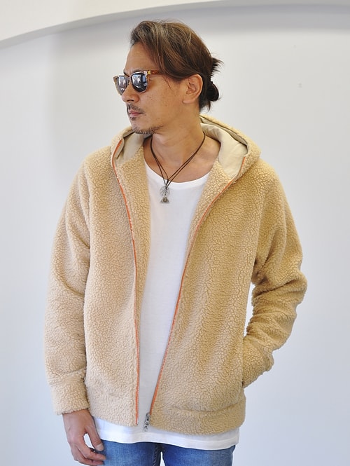 BACK HEAD オールドフリース ジップアップパーカー NATURAL