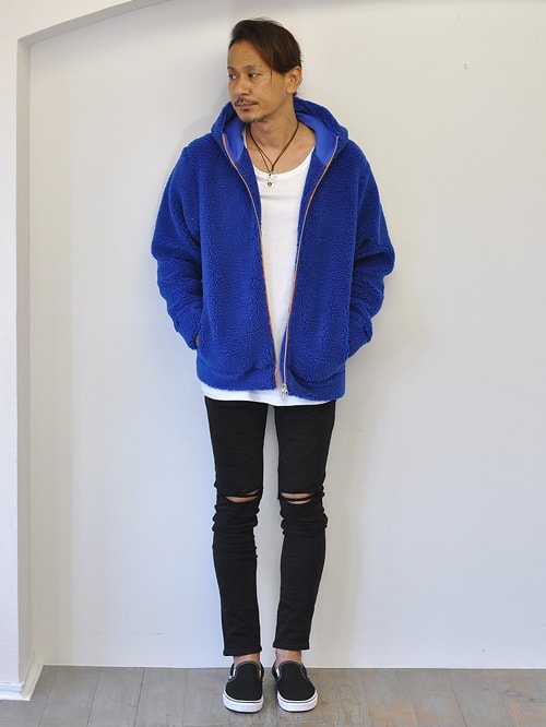 BACK HEAD オールドフリース ジップアップパーカー BLUE
